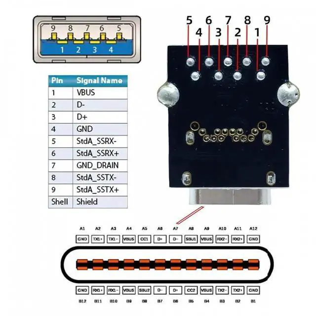 The Type-C female connector is replaced forUSB3.0 Type-A DIP Female.For DIY OEM use. You need to solder the connector yourself.