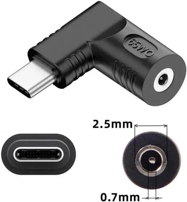 DC Jack 2.5x0.7mm Input to USB-C Type-C Angled 90 Degree Power Plug Charge Adapter for Laptop Phone