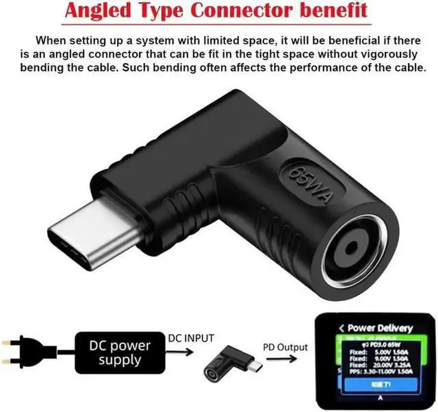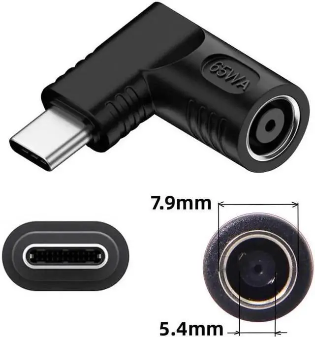 DC Jack 7.9x5.4mm Input to USB-C Type-C Angled 90 Degree Power Plug Charge Adapter for Laptop Phone