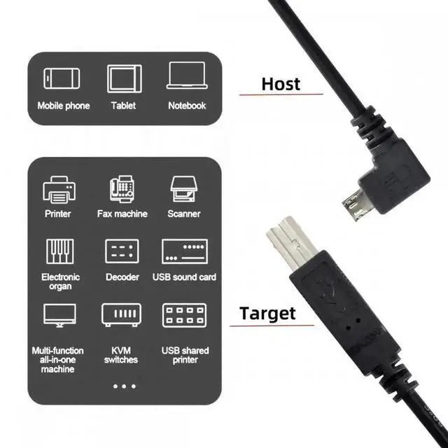 Right Angled 90 Degree Micro USB OTG to Standard B Type Cable for Printer Scanner Disk Lectronic Musical Instrument Midi Keyboard