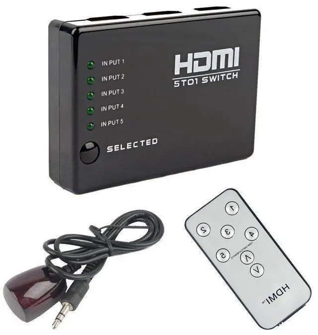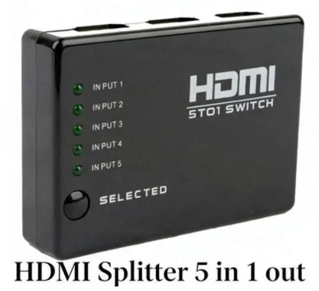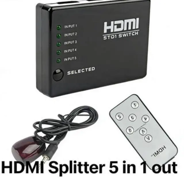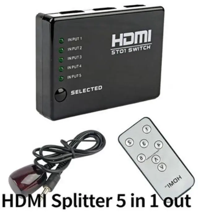 HDMI Switcher 5-input 1-output HDMI High-Definition Switcher 5-channel 1-output Video Distributor with Remote Control