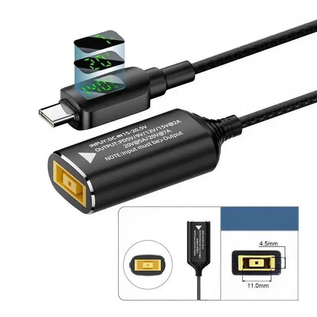 Rectangle Jack Thinkpad X1 Inputto USB-C Type-C Power 140W Smart LED Display Charge Cable for Laptop Phone PD9V 5V 20V7A