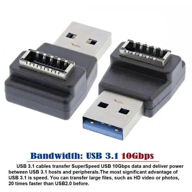 Type-A USB3.0 Male to Type-E USB 3.1 Front Panel Header Female Motherboard Extension Data Adapter 90 Degree Angled