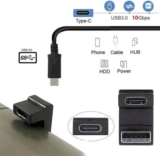USB-C Type C Female Up Opposite U Shape Back Angled to USB 3.0 A Male Data Adapter for Laptop Desktop