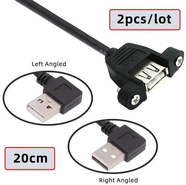 2pcs/lot Left Right Angled Type USB 2.0 Type-A Male to USB Female Extension Cable Panel Type 90 Degree 25cm