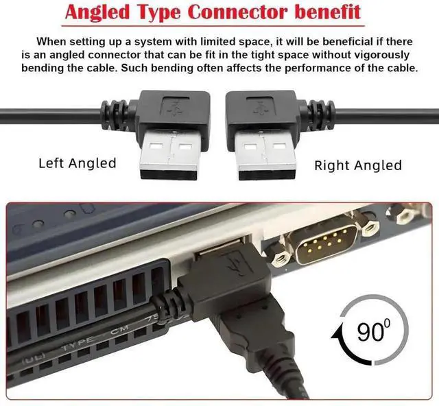 The USB plug is angled type; The angled type Allowing you to connect it to a female port, even if space around the port is limited.
