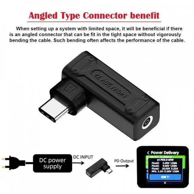 140W 100W DC Jack 4.5x3.0mm Input to USB-C Type-C Angled 90 Degree Power Plug Charge Adapter for Laptop Phone