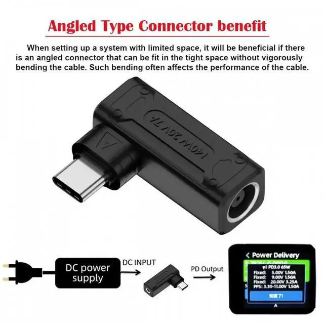 140W 100W DC Jack 7.9x5.4mm Input to USB-C Type-C Angled 90 Degree Power Plug Charge Adapter for Laptop Phone