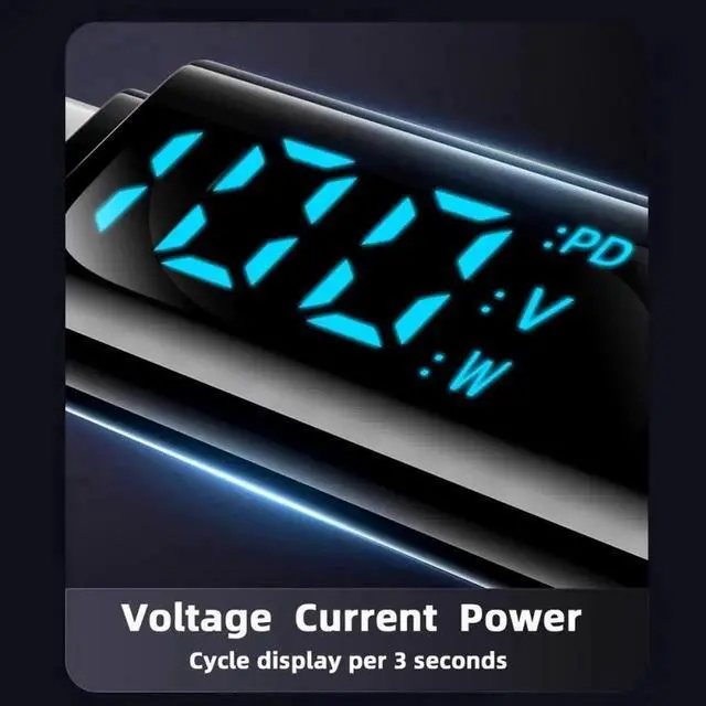 1) With Volt Current Power Display: LED light making charging visible; The adapter with an LED digital display screen that can display charging voltage, current and power in real time. It has a visual design that allows you to know the charging speed in real time and monitor device status.