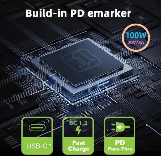 Support Type-C PD and QC2.0/QC3.0/USB PD,Build-in 100W DC20V 5A PD Emulator Trigger at type-c male end;
