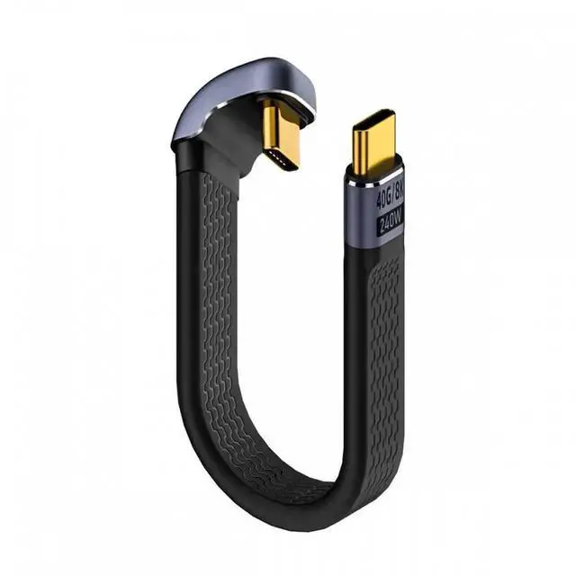 240W Type-C USB-C Male to Male USB4 40Gbps 100W 8K Flat Slim FPC Data Opposite U Shape Back Angled Cable for Laptop Phone 13cm