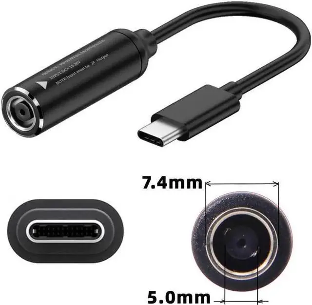 7.4x5.0mm Input to USB-C Type-C Power Plug Charge Cable for Laptop Phone PD9V 5V 20V