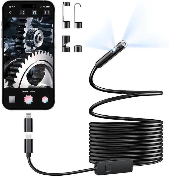 Mobile phone directly connects to the camera maintenance tool i - high-definition industrial endoscope - portable pipeline endoscope, universal for mobile phones - double head - semi-rigid hard wire -