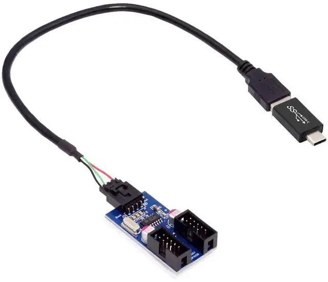 It can extend your type-C connector to 2*9pin connectors.You can convert the Type-C host port to usb 2.0 Type-A or 9pin/10pin device. Used to connect USB cables or adapter in tight fit applications.