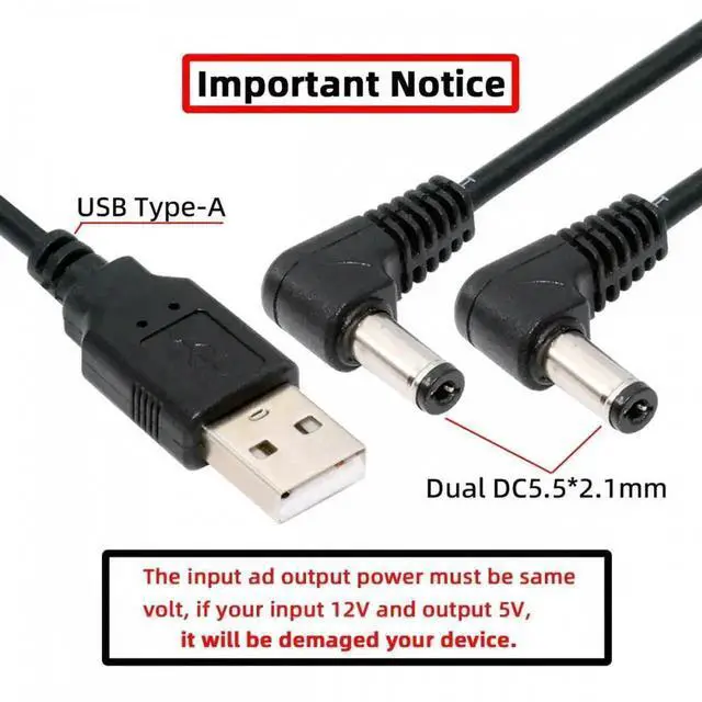 Length 150 cm,Connector Size USB 2.0 to 2 DC 5.5*2.1mm.