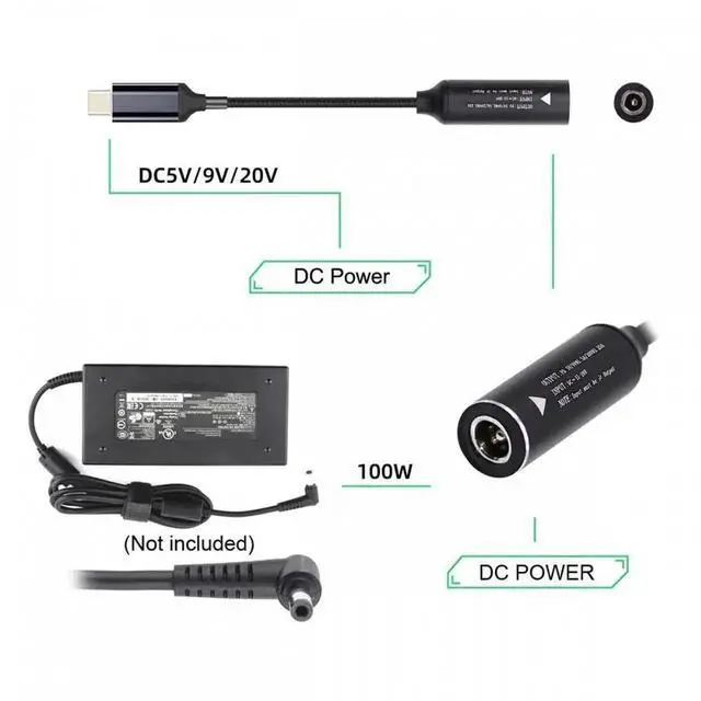 DC Jack 5.5X 2.1 mmInput to USB-C Type-C Power 100W Charge Cable for Laptop Phone PD9V 5V 20V