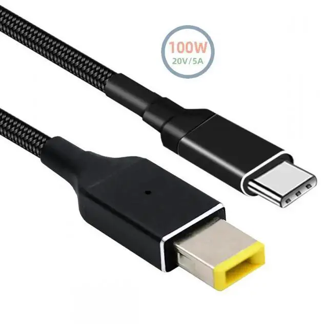100W Type C USB-C Input to Rectangular Jack Output Power 20V 5A 65W PD Charge Cable for Thinkpad X1 Legion Y7000P Laptop