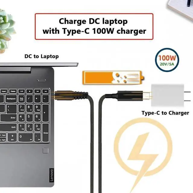 Use it with the 100W/65W Type-C Charger to charge your Laptop with DC 5.5 mm port.