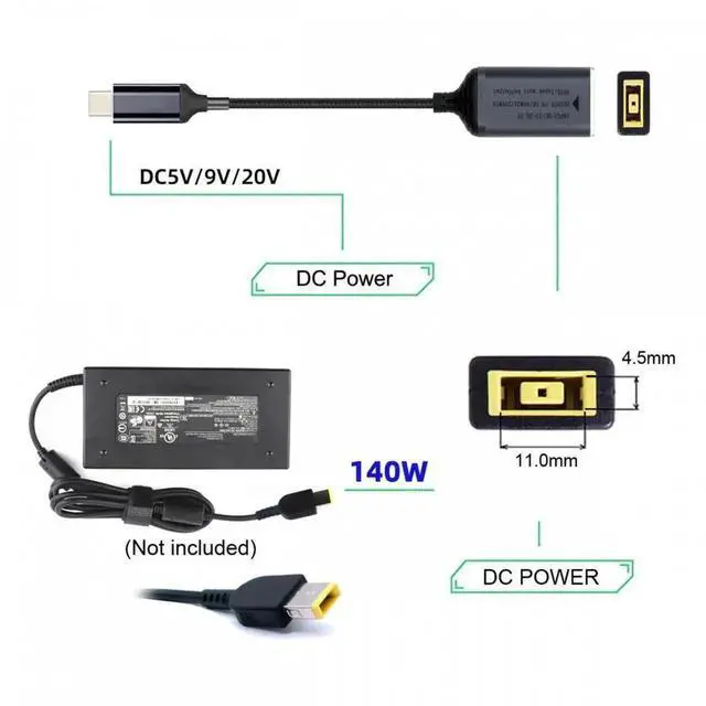 Rectangle Jack Thinkpad X1 Input to USB-C Type-C Power 140W Charge Cable for Laptop Phone PD9V 5V 20V 7A