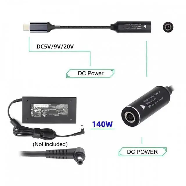 DC Jack 5.5 x 2.5 mm Input to USB-C Type-C Power 140W Charge Cable for Laptop Phone PD9V 5V 20V7A