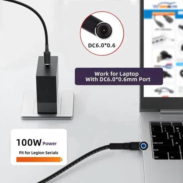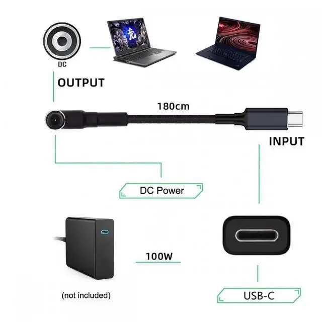 Use it with the 100W/65W Type-C Charger to charge your Laptop with DC 5.5 mm port.