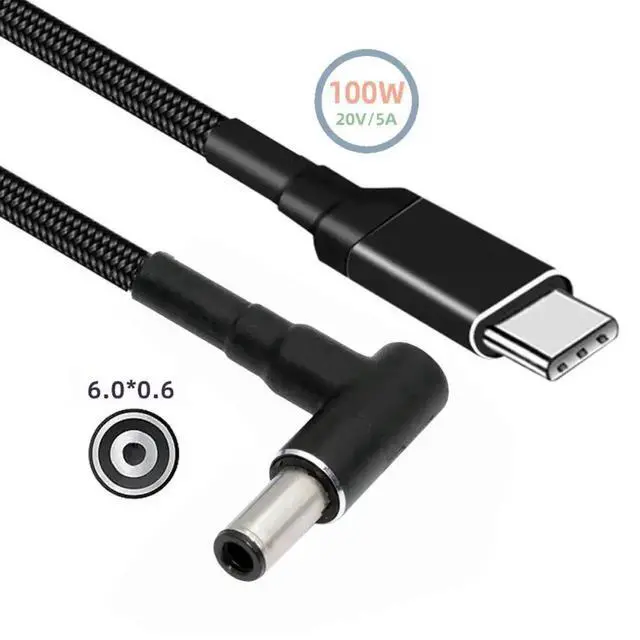 Type C USB-C Input to 20V DC 6.0 * 1.4 * 0.6 mmOutput Power 100W 5A 65W PD Charge Cable for Laptop