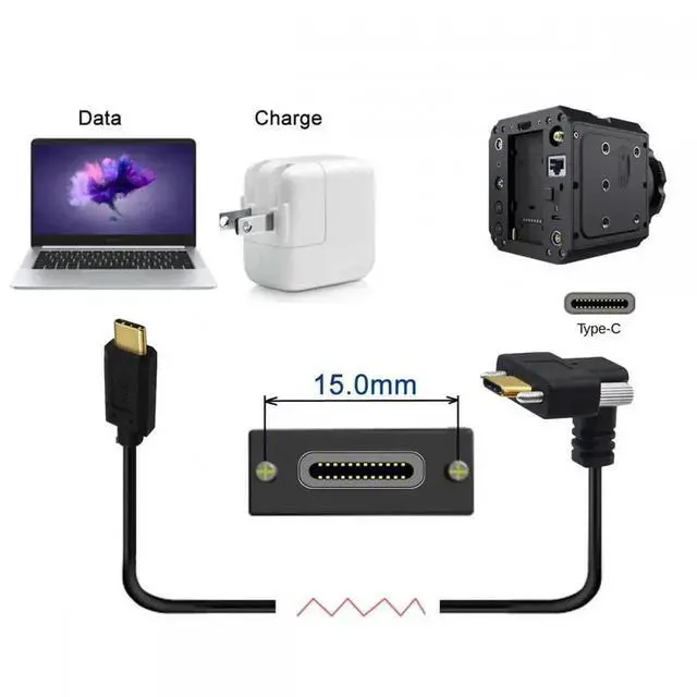USB 3.1 Type-C Male to Dual Thumbscrew Locking USB-C Vertical 90 Degree Up Down Angled 10Gbps Data Cable Panel Mount Type