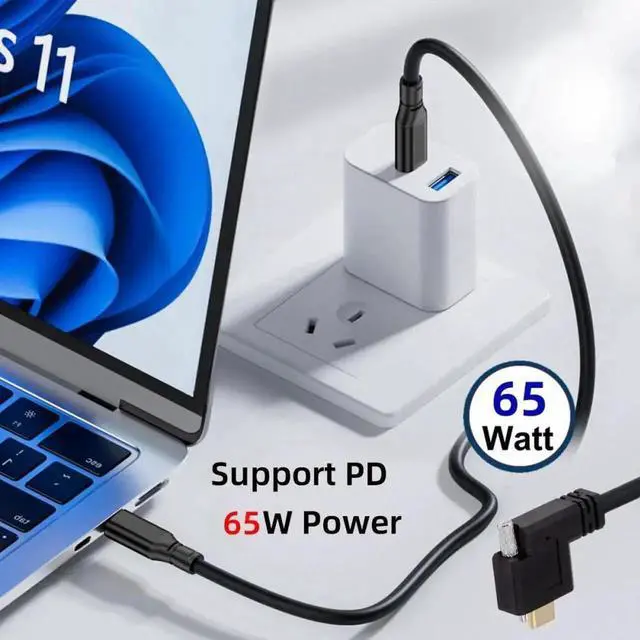 USB 3.1 Type-C Male to Single Thumbscrew Locking USB-C Horizontal 90 Degree Left Right Angled 10Gbps Data Cable Panel Mount Type