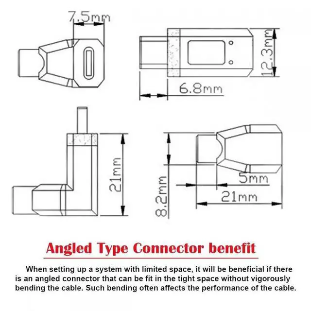 Angled Connector: The angled type Allowing you to connect it to a female port, even if space around the port is limited. This cable angles giving you that natural feel when shooting tethered. It feels great, and works fantastic.