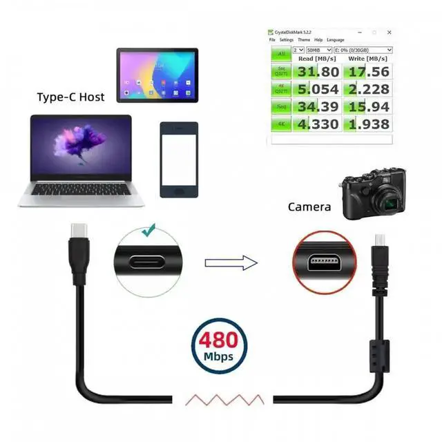 USB-C Type-C Host to Camera Mini 8P Data Power Cable for Coolpix UC-E6 UC-E16 UC-E17 DSC-W DMC-S EX-Z