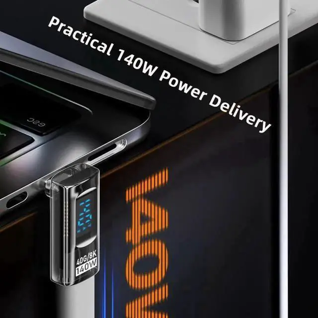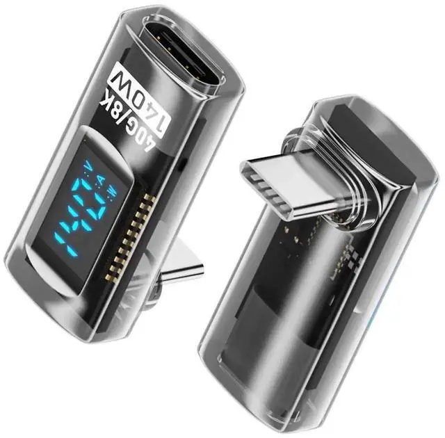 Type-C Smart LED Display USB-C Male to Female Extension Adapter USB 4.0 40Gbps 140W Up DownAngled 90 DegreeCurrent Voltage Monitoring