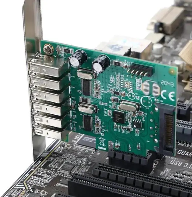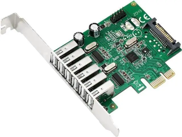 This USB 2.0 PCI-Express card is compliant with Universal Serial Bus Specification Revision 2.0 and Open Host Controller Interface Specification for low-speed ( 1.5M bps) / full-speed (12Mbps) speed signaling and Enhanced Host Controller Interface Specification for high-speed signaling (480Mbps).