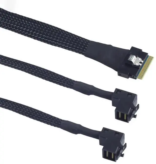 Upward SFF-8643 Connectors \u2013 Convenient right-angle design for optimized cable routing in tight rackmount servers.