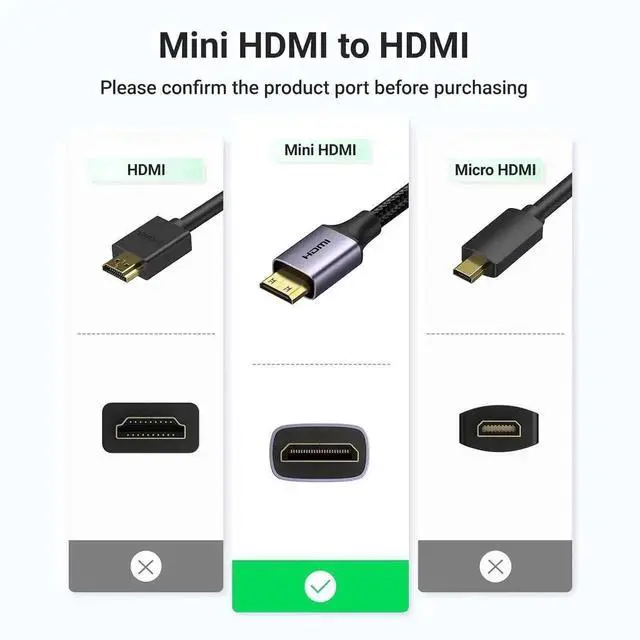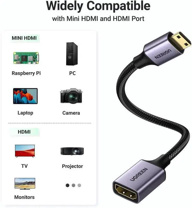 HDMI Adapter: UGREEN mini HDMI male to HDMI female adapter converter easily converts mini HDMI port on your laptop, camcorder, camera, or even some tablet to a standard HDMI Type A interface on TV, monitor, or projector. Bi-Directional Transmission features, supports mini HDMI to HDMI & HDMI to mini HDMI.