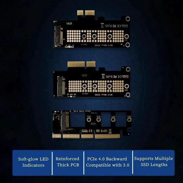 Supports Multiple NVMe SSD Sizes Fully compatible with M.2 NVMe drives in sizes 2230 / 2242 / 2260 / 2280 (M key or M&B key); not compatible with M.2 SATA drives.