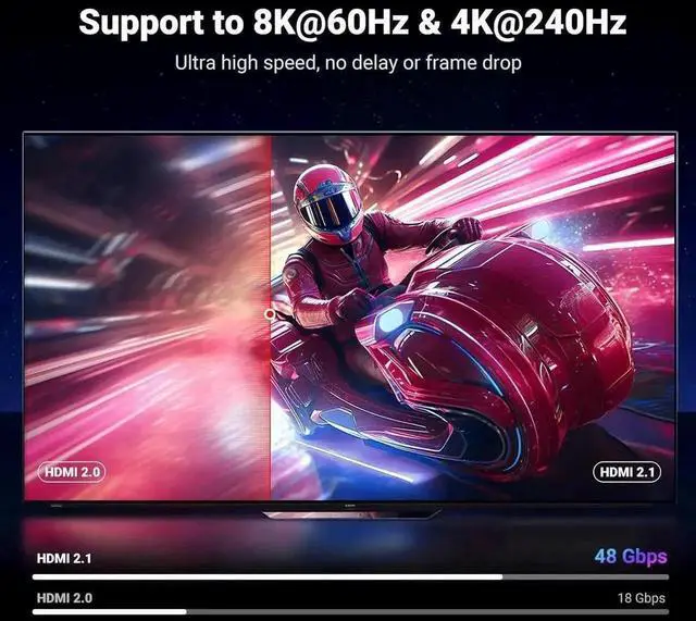 HDMI cable: The HDMI Cable delivers 10K 8K@60Hz and 4K@240Hz higher resolution, 4 times higher than 4K@60Hz. The advanced technology makes a remarkable improvement in image clarity and sharpness