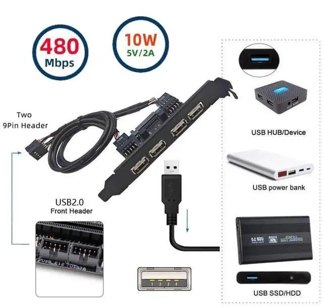 With this cable, you can directly connector motherboard 9pin socket, converted to USB 2.0 socket. Cable length 30cm, With 12cm length standard PCI-E bracket.
