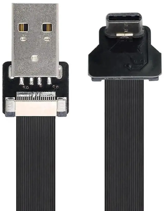 USB C Flat Cable USB 2.0 Male to USB C Male 90 Degree UP Angled Ribbon Flex Extension Cable Adapter 0.5M