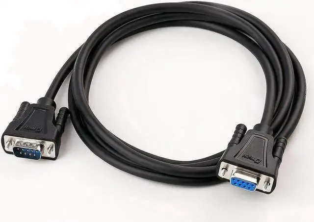 Wired as a 9 pin serial cable male to female port cord that 2-3 line are crosslinked (only TX/RX data and signal ground wires connected); standard shielded with AL foil