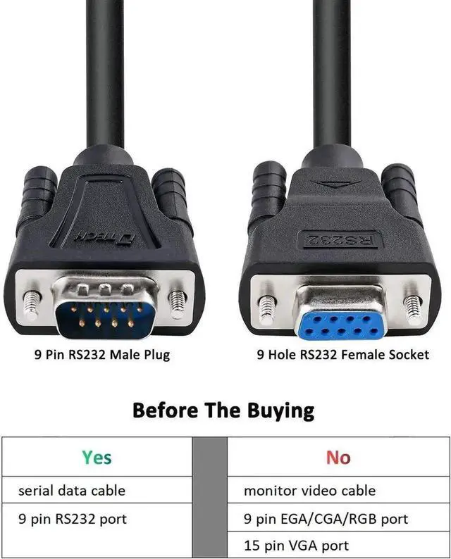 6 feet long RS232C cable for hooking up RS232C equipment like scanner, Modem, printer, plotter, camera, barcode / embroidery machine, touchscreen, microcontroller, factory test equipment