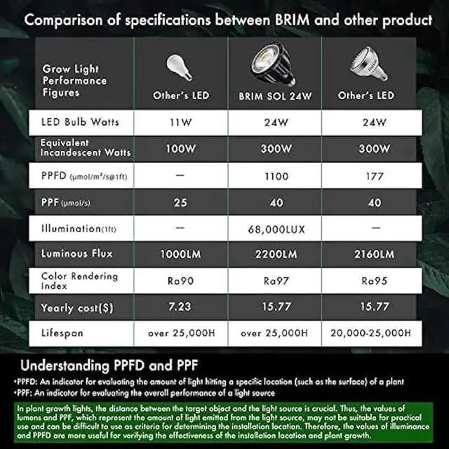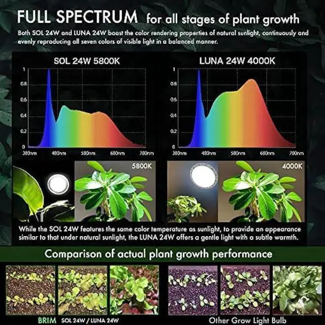 [Easy to install & grow]Have you ever experienced the following? Bad weather, lack of sunlight, not enough sunshine in the room, or too much of a hassle to manage your plants, such as having to move it to another location?... To satisfy everyone, from beginners and experts, the new BRIM SOL 24W led plant-growing light boasts greatly improved performance through the introduction of the latest chip and redesigning of the lens. The light is easily installed by turning the socket in the same way as a light bulb.