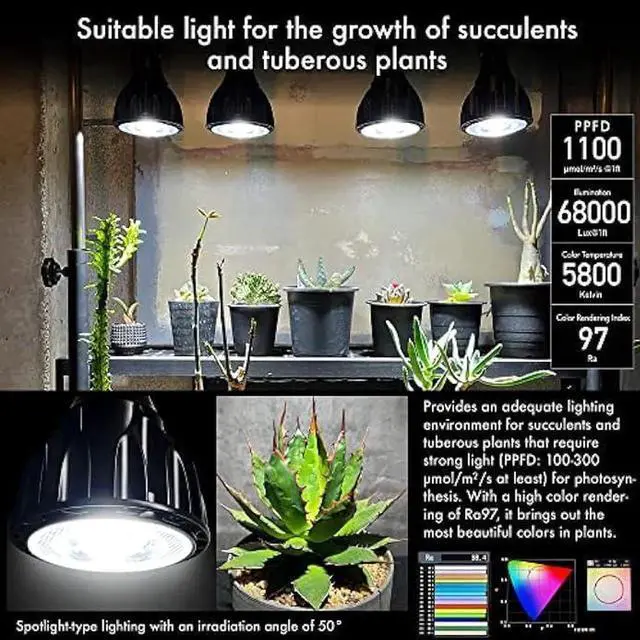 [Long life, improved durability, and stylish design]The use of COB LEDs with excellent heat dissipation performance reduces the amount of heat generated to significantly decrease the failure rate during prolonged use when growing plants. With a theoretical lifecycle of 30, 000 hours, the improved material and processing method reduces the risk of the socket collapsing, resulting in high durability. The stylish exterior design allows plants to blend in with the atmosphere of the room, creating a nice interior space.