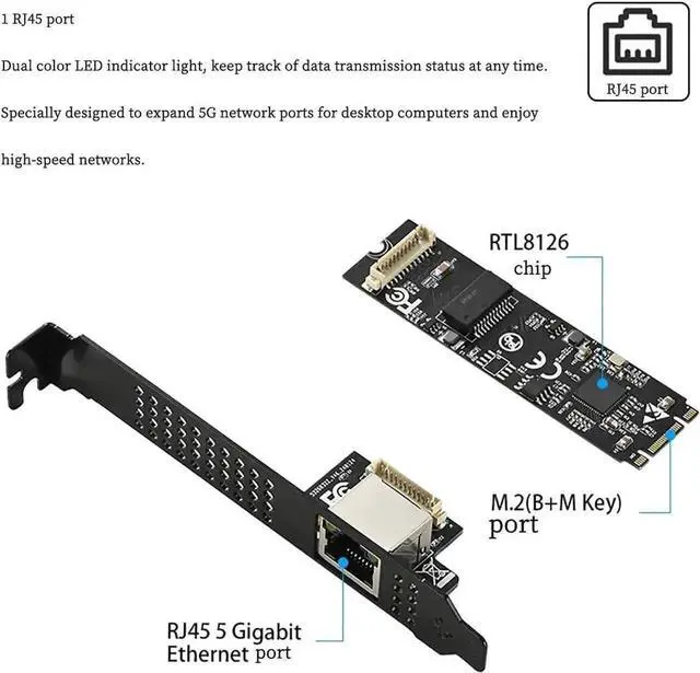Port type: 1 RJ45 interface .Interface type: M.2 (B + M Key) .Speed: 10/100/1000M/2.5G/5G .