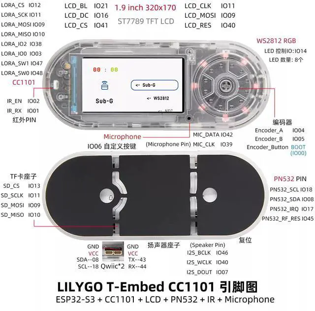 T-Embed-CC1101 ESP32-S3 1.9-inch LCD PN532 module development board