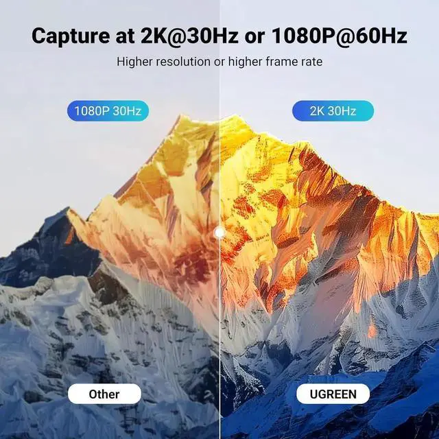 Ultimate HD 2K@30Hz Capture Card: UGREEN capture card for streaming supports capturing up to 2K 30fps. This high-definition resolution ensures sharp and detailed recordings, making it ideal for gamers, streamers, and content creators who seek top-notch quality
