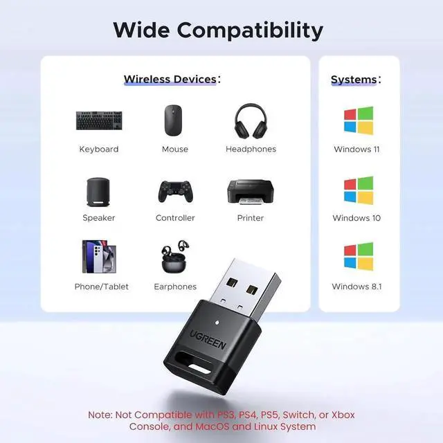 Plug and Play: Designed exclusively for Windows systems, this Bluetooth receiver requires no driver installation on Windows 11/10/8.1. It is not compatible with Windows 8/7, Linux, or macOS.