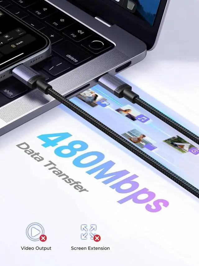 Super Fast Data Transfer: This type c data cable transfers data at up to 480Mbps to quickly transfer 1GB movies, music, documents or entire photo libraries in less than a minute. (Note: Do not support video output)