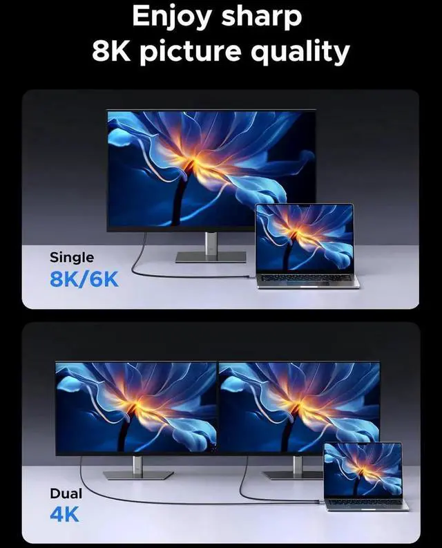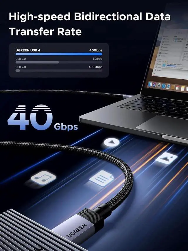 40Gbps Lightning Data Transfer: This usb c monitor cable can transfer a 20GB 4K movie in just 3 seconds, 8 times faster than a standard USB C cable. Perfect for photographers, developers, and users who transfer large files between SSDs, NAS, or two computers