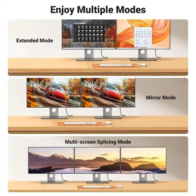 Choose Video Mode for your Needs: Mirror mode allows you to view on a bigger screen. Extend mode helps you display different content on external screen. You can connect max 6 screens at a time. There is no need for driver, or software, just plug and play