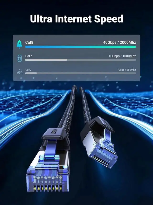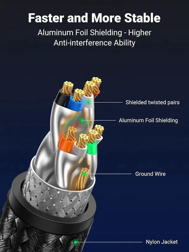 Excellent Anti-interference: UGREEN 2pk cat8 ethernet cable are designed with 4 shielded foiled twisted pairs (F/FTP) and an aluminum foil shielding layer. This design can greatly reduce interference and crosstalk from adjacent pairs and other cables, making network speed faster and more stable.